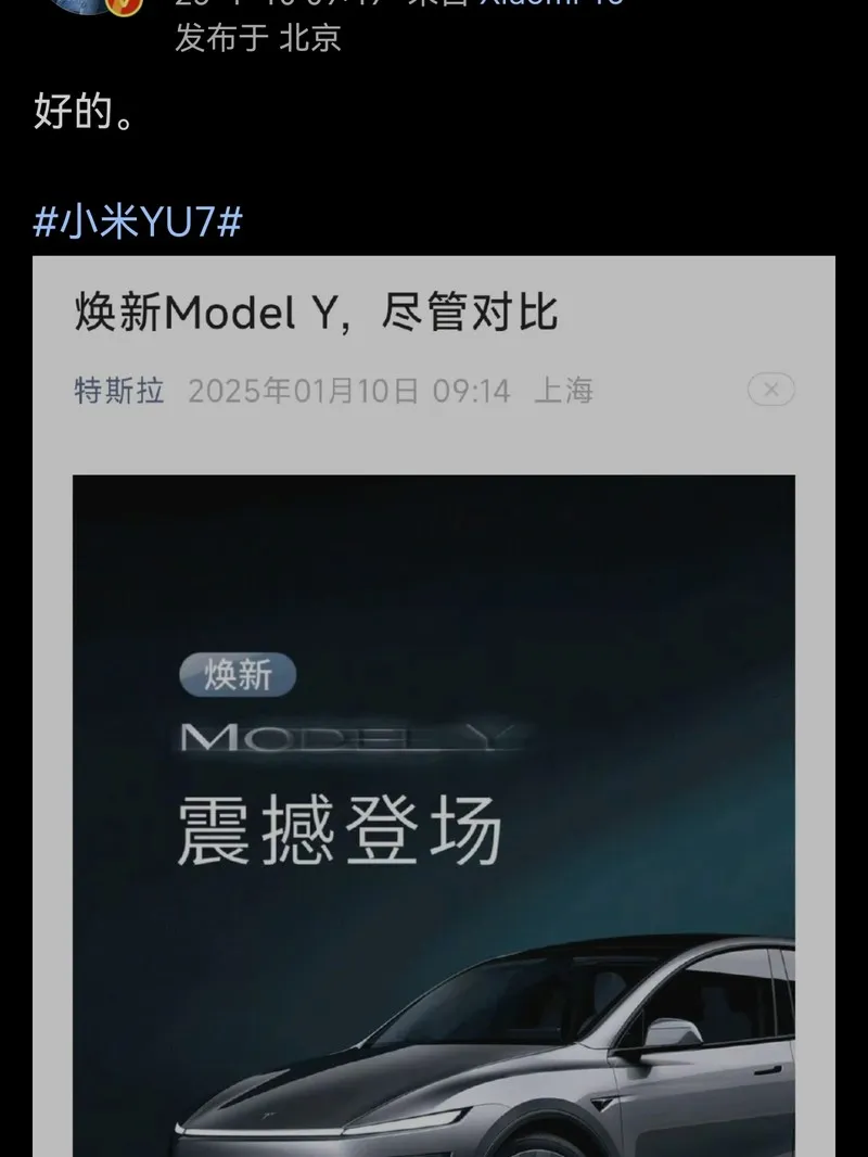 特斯拉发个车,雷总都能把自己拉上热搜,不要和雷老板比营销看看焕新版Model Y的起售价