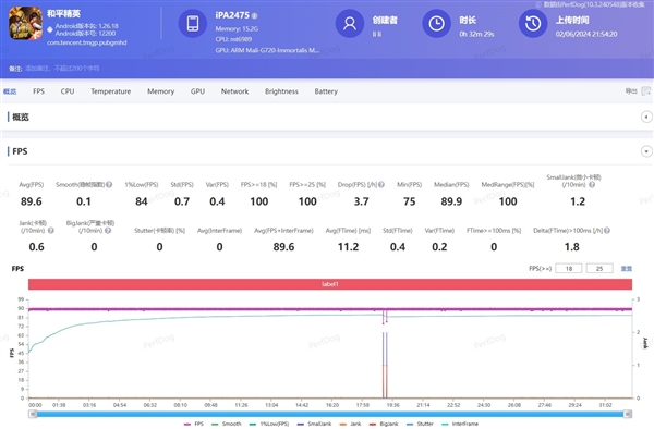 同样在《和平精英》HDR高清画质+90帧模式下,半小时平均帧率也达到了89.6帧,iQOO Pad2 Pro在运行两个游戏时,帧率全程保持稳定,没有出现明显的卡顿掉帧情况。