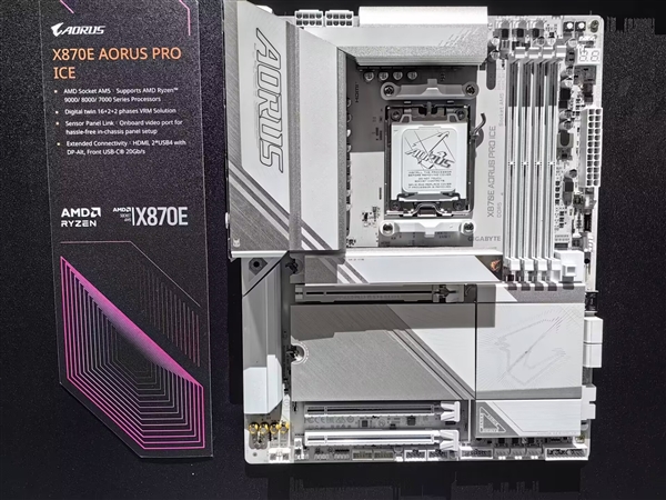 除了高端的X870E系列,技嘉还展示了一款全新的背插主板——B650E AORUS STEALTH ICE。