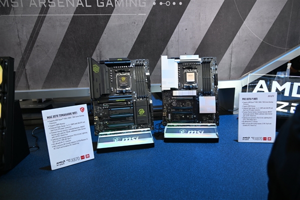 当然,支持锐龙9000系列的AMD新一代X870主板也不能少,微星这次展示了两款,一是针对主流玩家的MAG X870 Tomhawk WiFi,二是面向专业用户的PRO X870-P WiFi。