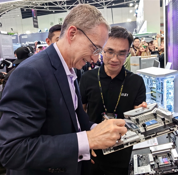 Intel CEO帕特·基辛格也亲自来到微星展台,观看了微星的下一代主板,并在主板上亲笔签名留念,引发现场一阵阵欢呼。