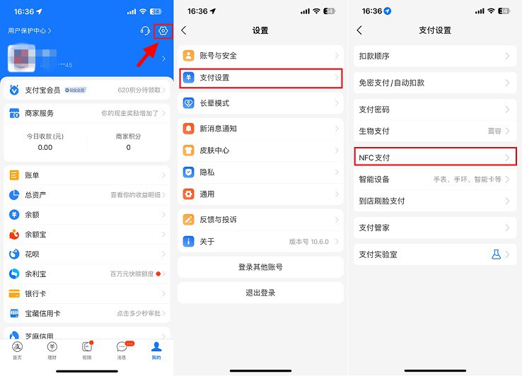 一旦您将支付宝应用程序升级至最新版本v10.0.6或更高版本,您就能够轻松在支付宝的“支付设置”页面中启用NFC支付功能。