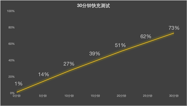 除去续航外,近年来手机的快充表现也越来越受到用户的重视,荣耀Magic V Flip采用了66W快充,在30分钟快充测试中,可以实现将手机电量从1%充至73%,可以满足用户快速补电的需求。