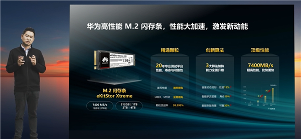 科技号6月26日消息,今年2月份,华为在数据存储新春新品发布会上推出了坤灵eKitStor Xtreme系列高性能M.2闪存条,也就是固态硬盘。