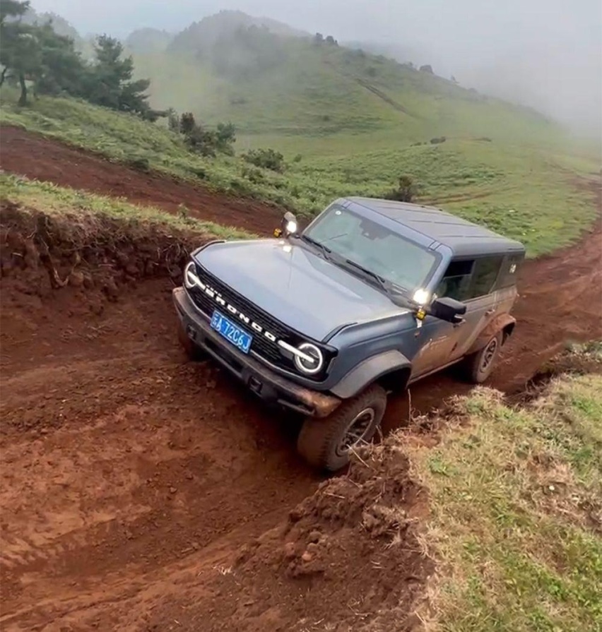 通过体验发现福特烈马在越野很“野”的环境下表现很优秀。本次试驾体验的是福特烈马2.3T 荒地版,其接近角为45度,离去角37度,最小离地间隙达到273mm。让福特烈马轻松应该对青松岭越野营地的各种复杂地形,像陡峭的山坡、深邃的沟壑都能从容应对,展现出其强大的越野实力。同时,适合的轮胎,对越野车来说至关重要,福特烈马2.3T 荒地版配备的是35英寸泥地胎,不仅增大了与地面的接触面积,提高了抓地力,而且其独特的胎纹设计也能够在沙地等松软路面上提供更佳的牵引力,让车辆轻松脱困。