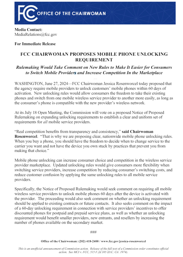 不过,美国联邦通信委员会(FCC)拟定的一项新规,将直接让有锁机变成无锁机。