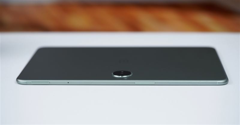 一加平板Pro的侧边细节,厚度在6.49mm、584g的重量,在平板品类中还是较为轻薄的。