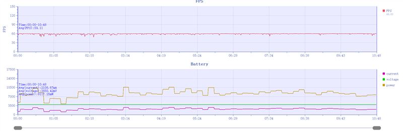 从上图可以看出,整体曲线基准在60 FPS,虽然略有一定的波动,但都在幅度并不算大。