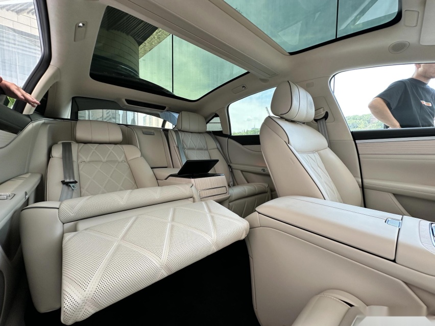 作为一款行政级旗舰轿车,享界S9在座椅配置方面也下足了功夫,全系均采用Nappa真皮材质,全车四个座椅也均具备电动调节、通风、加热、按摩等功能。后排双零重力座椅更是配备电动腿托,结合前排副驾座椅向前折叠功能,可以为后排乘客提供更好的乘坐体验。此外,前排座椅后方还设置有小桌板和MagLink接口,中央扶手处配有扶手控制屏与车载冷暖箱,加之智能激光投影系统、隐私隔音玻璃、电动遮阳帘等,营造出后排独享私密空间。