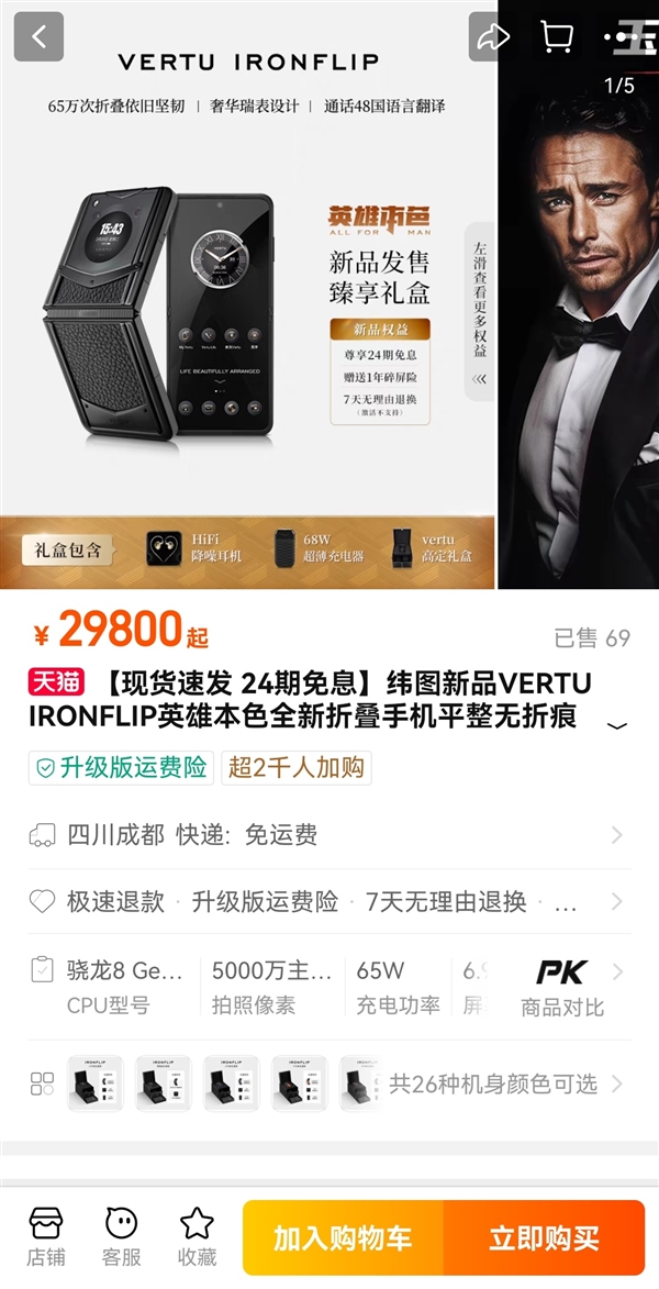 据悉,马女士购买的机型是Vertu IRONFLIP,是一款小折叠屏,该机搭载了第二代骁龙8处理器以及A5独立安全芯片,采用金刚水滴铰链,支持任意角度悬停。