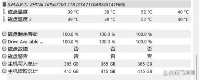 日常待机情况,固态硬盘的温度在39℃左右,表现很优秀。