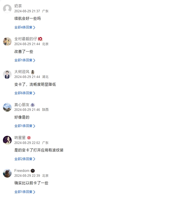 需要注意的是,华为似乎在这个版本进行了温控优化,花粉俱乐部有用户反馈,手机温度有明显下降,但流畅度似乎也同样有下降,实际表现还有待检验。
