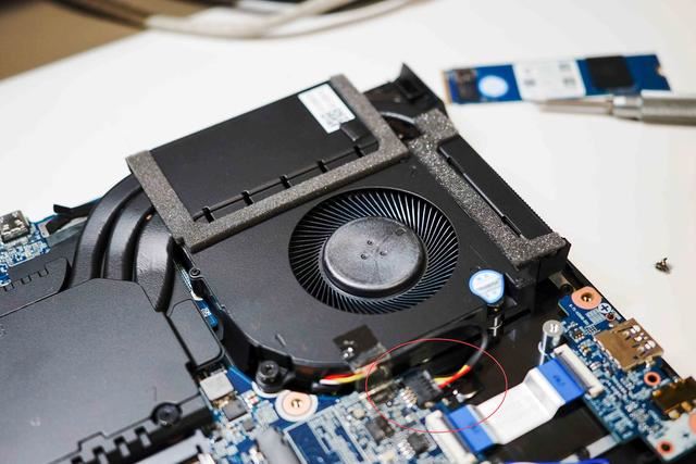 后续过保也比较简单,拆螺丝之前先拔掉左右两个风扇的接线,右侧的需要拆掉固态硬盘才能看到,之后拆掉整个散热的固定螺丝就行了。