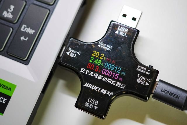 右侧则是A口的USB接口和C口的USB接口,其中的C口支持直接充电,实测用绿联的第三方GAN头可以满速快充。