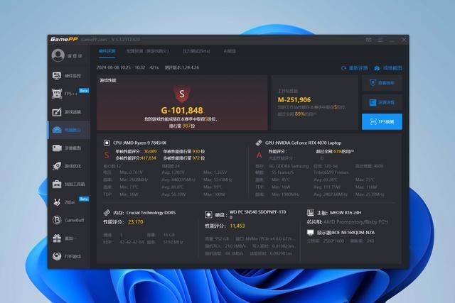 特别推荐游戏玩家跑一下游戏加加的性能测试,跑完之后会给出大部分游戏的帧数预估,可以帮忙避开跑不动的游戏,七彩虹MEOW R16看1080P和2K就行。