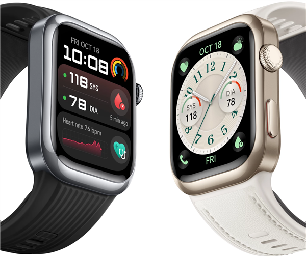 正面配备一块方形的1.82英寸AMOLED显示屏,内部集成GPS模块和华为的新TruSense传感器。