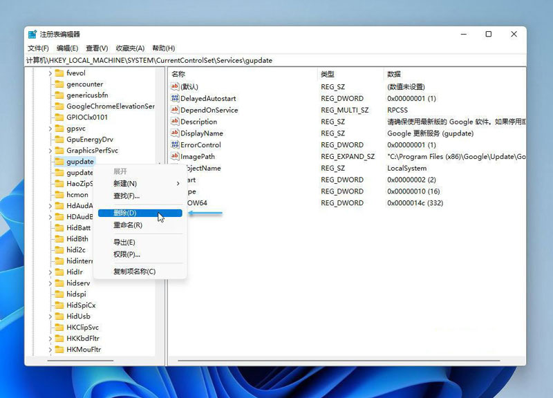 3、Windows 上的所有「服务」都由Services目录中的键表示,只需右键点击要删除的服务名称,然后选择「删除」即可。