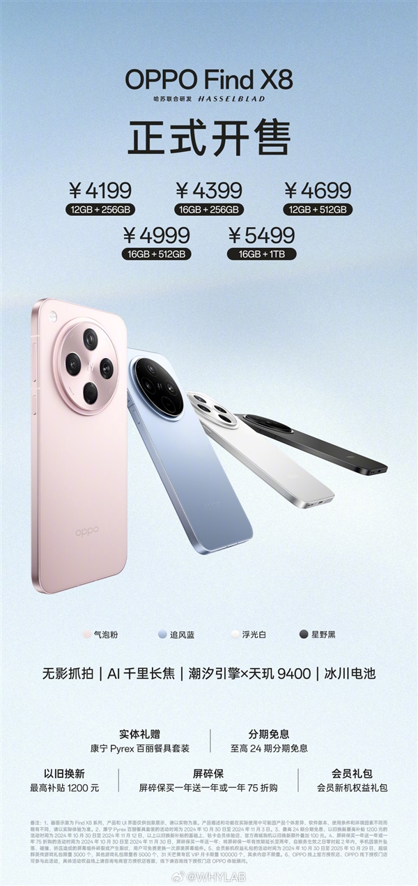 科技号10月30日消息,OPPO宣布Find X8 Pro正式发售,起售价是5299元(12GB+256GB)。