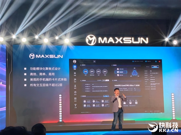 在AI的浪潮下,铭瑄也积极跟上,推出了基于酷睿Ultra NPU运行的Maxsun AI Control Center控制中心软件,支持多屏独立设置、性能模式切换、智能捕捉游戏高光时刻、超分辨率视频加速等等,还具备联动铭瑄灯效、智能相机等玩法。