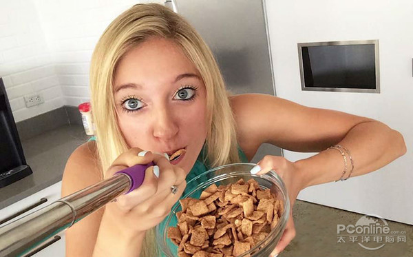 美美哒吃饭姿势怎么拍下来呢?自从智能手机和社交网络普及之后,饭前拍美食、嘟嘴自拍已经成为一种潮流了,但是问题又来了,毕竟要一手持碗、一手持勺子/筷子呢,最近国外Cinnamon Toast Crunch的食品厂商就别出心裁的想到了一个好办法,专门为喜欢吃饭时自拍的人群准备,且居然是免费开售,用户只需支付运费。因此在其上架后不久,众人就开始纷纷晾晒自己的“饭拍照”,其火爆程度可见一斑,但是无论怎么看,这款产品都掺入了满满的恶意……也许有设计师恶作剧的意思在其中吧。