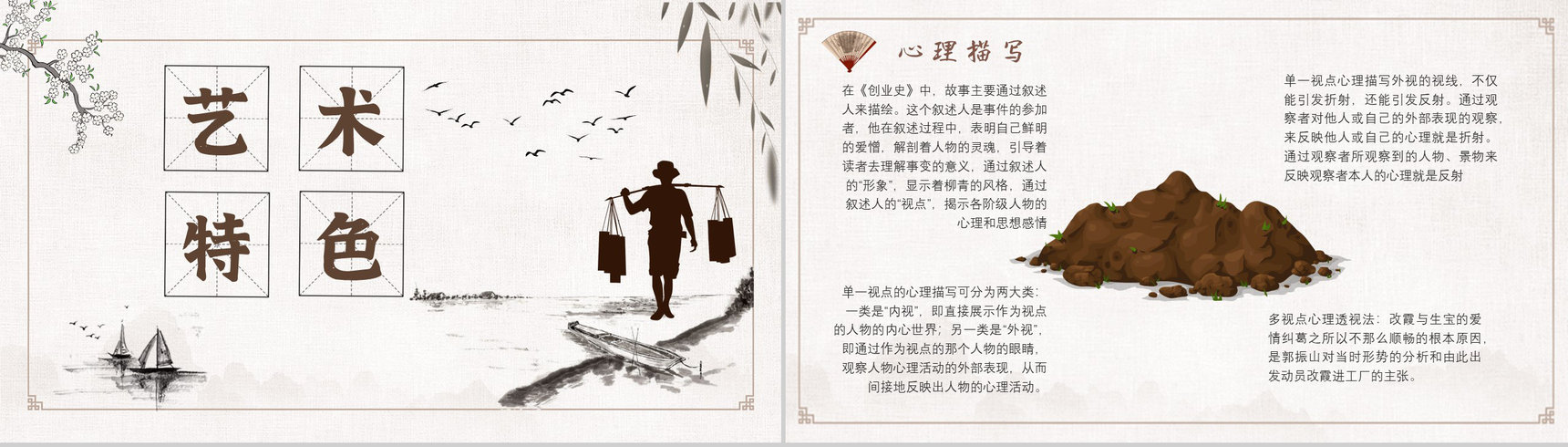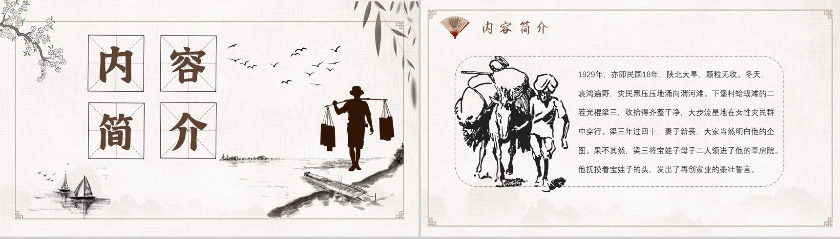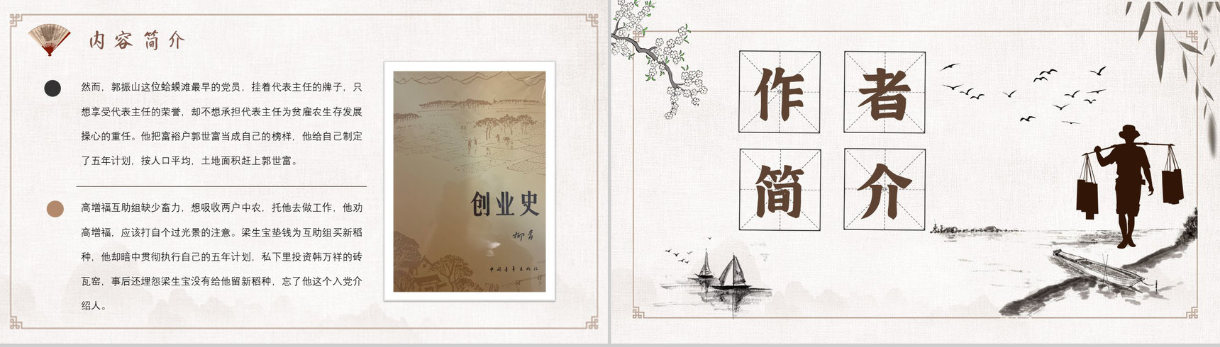 本作品内容为 心得体会教育培训柳青《创业史》内容简介PPT模板,格式为pptx,大小 8.79MB,页数为 23, 比例为,请使用软件Power-Point打开,作品中的文字与图均可以修改和编辑,图片更改请在作品中右键图片并更换,文字修改请直接点击文字进行修改,也可以新增和删除作品中的内容。