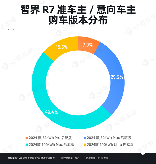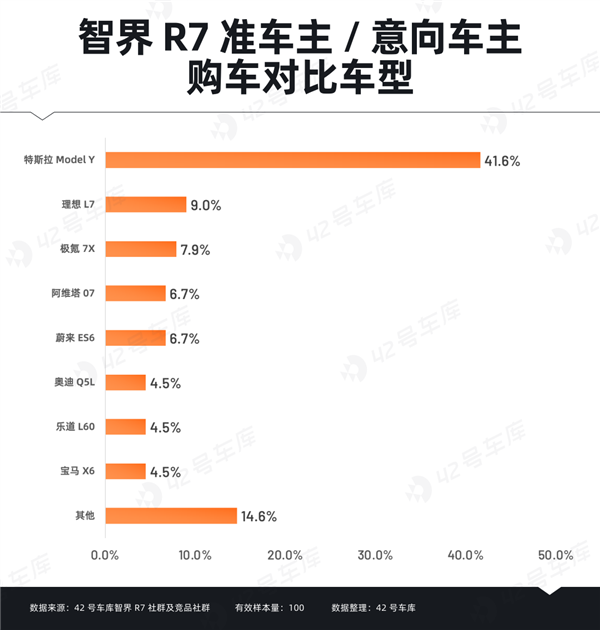 近日,媒体“42号车库”调研了100名智界R7的车主(准车主、意向车主),并发布了调研报告。