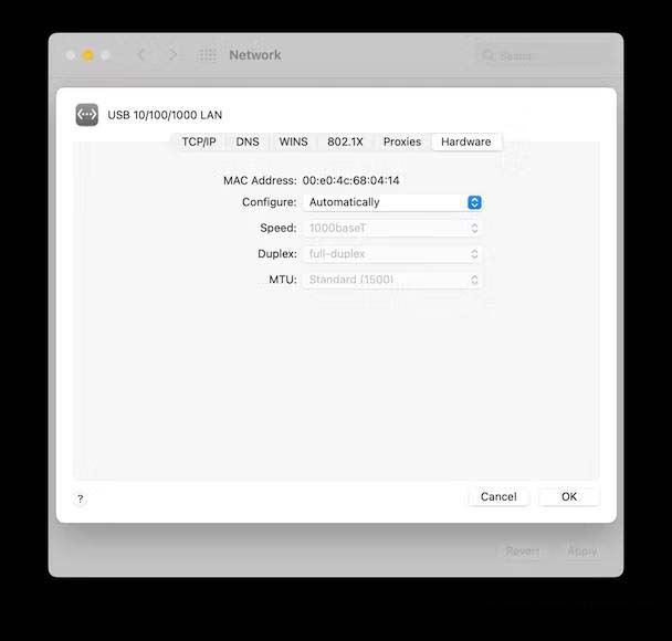 3、将以太网电缆的另一端连接到Mac中的以太网端口。