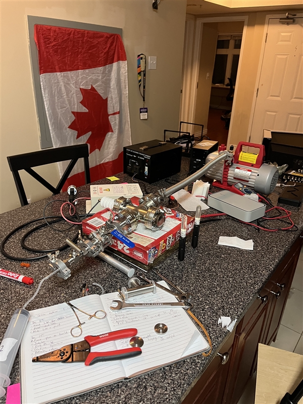 在获得所有部件后,Hudzah和朋友开始了实验,他们花了6个小时组装部件,确保真空室能达到3 mTorr的压力,接下来他们寻找升压变压器,进行调试,处理损坏的真空传感器。