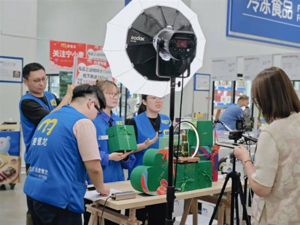 连锁商超品牌麦德龙就发动店员在抖音做“职人”。@麦德龙(宁小麦) 是南京雨花商场店的职人账号。门店同事合作拍摄视频,有些是站在货架前,手捧主推产品的“硬广告”,为直播间引流,还有一些导购员的工作、整活日常。直播内容的专业性不亚于专业带货主播,毕竟他们对产品的熟悉程度很高,一人播,镜头后还有同事帮忙做运营,可见已形成稳定成熟的直播流程。