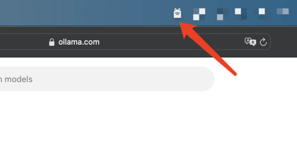 下载完成后,双击安装程序并按照提示完成安装。如果在顶部菜单栏中看到这个羊驼图标,即表示Ollama在运行状态。
