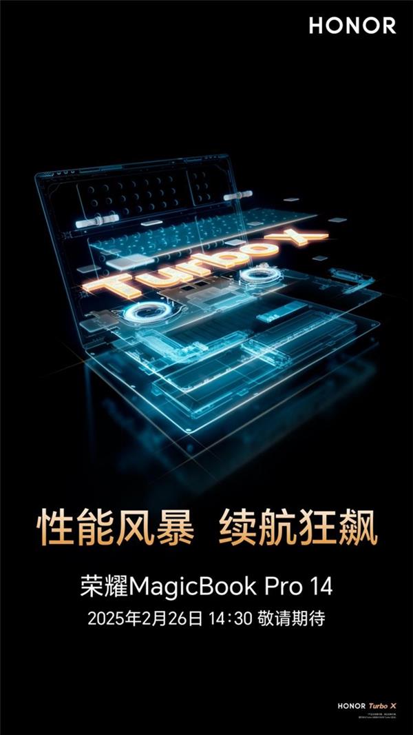 在全新的HONOR Turbo X加持下,荣耀MagicBook Pro 14还将带来哪些惊喜?2月26日14:30,荣耀笔记本新品发布会准时揭晓。