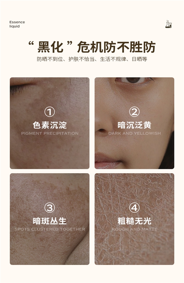淡化黑色素,均匀肤色,焕白通透亮白肌。