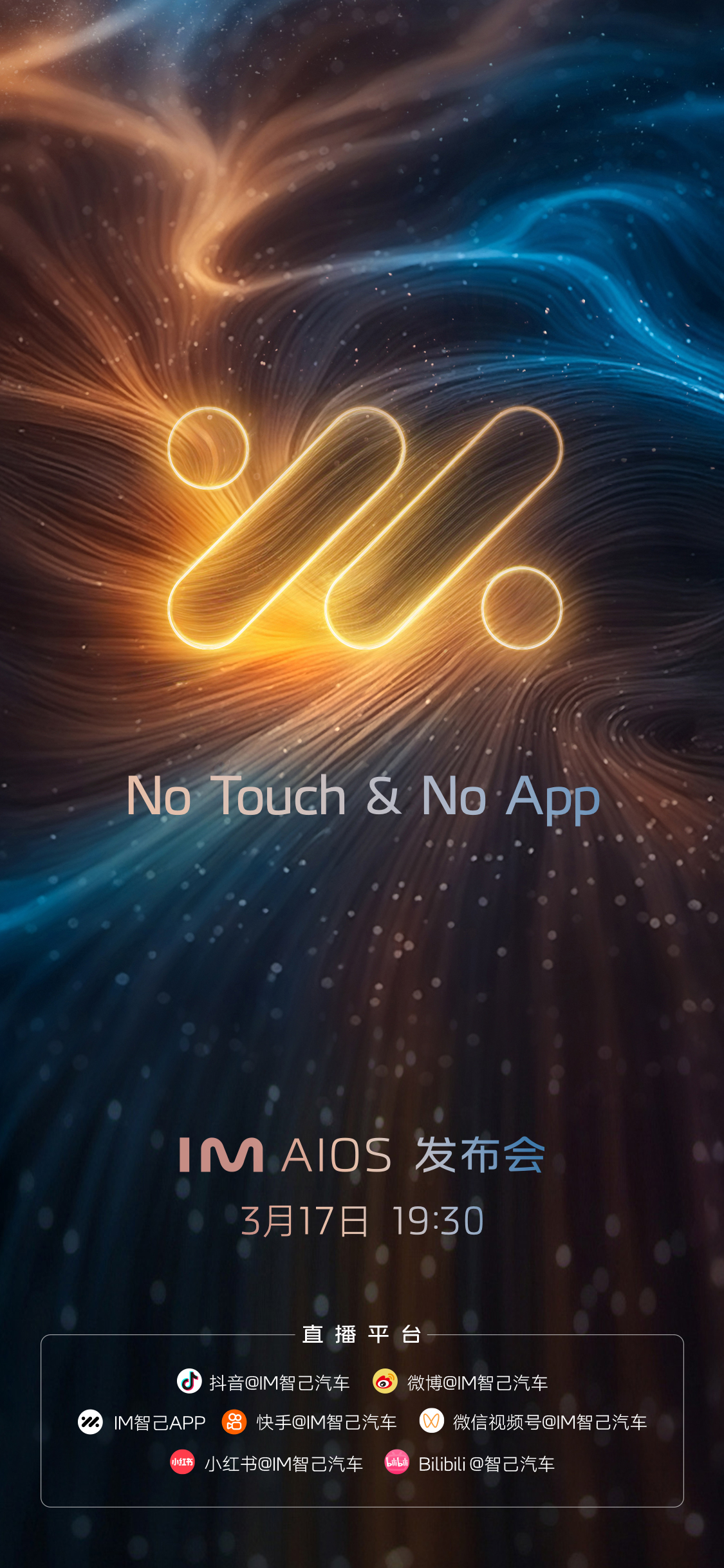 3月17日,智己汽车将携手阿里旗下斑马智行等板块重磅发布IM AIOS,以“No Touch & No App”的颠覆交互革命,重构AI时代人车关系新范式。依托阿里强大的AI技术与生态资源优势,IM AIOS将实现更自然的交互方式、更智能的场景服务、更开放的生态融合,成为“懂车、懂你、更懂生活”的智慧伙伴。