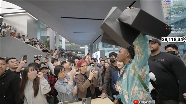 而在大洋这一边,Youtube拥有超3700万粉丝的美国“顶流”网红“甲亢哥”Speed来到了深圳,在万象城疯狂下单3台华为Mate XT三折叠手机。