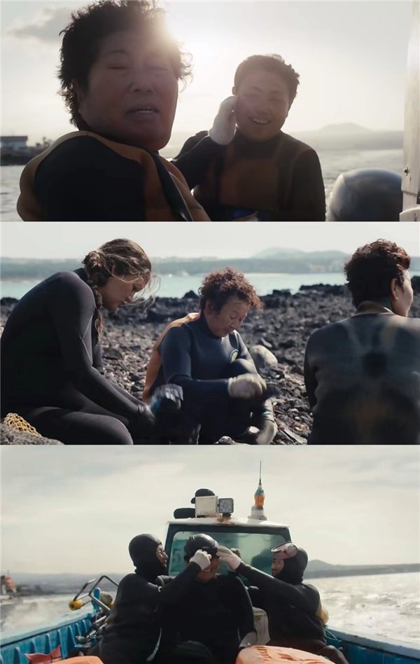 年幼的爱纯在岸上急得直跺脚,但妈妈总是不上岸。海女姐妹们也劝光礼不要太“贪心”,在关于海女的纪录片中有这样的说法,那些被大海吞噬死去的海女,她的渔网里一定装着最多的鱼。对碎银几两的执着,带走了这些苦命的女人。