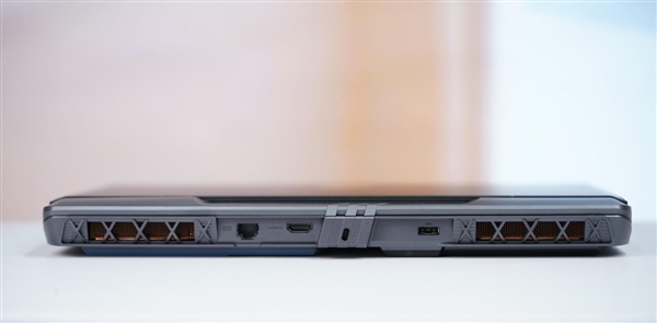 接口配有双雷电5、双USB 3.2 Gen2 Type-A、一个HDMI 2.1、RJ45网口、SD读卡器和音频插孔,还配有双扬声器,大腔体音室,得到了Hi-Res认证,另外还有多阵列麦克风。
