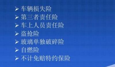 其中包括车损险,不计免赔保险,车上人员的责任险,全车玻璃破碎险,车辆车身划痕损失险。第三者责任险,盗抢险,车辆商业保险是可以自由组合,根据用车实际情况来购买,并不会有强制购买项目。