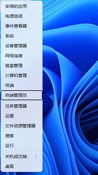 1、按【 Win + X 】组合键,或【右键】点击任务栏上的【Windows徽标】,在打开的菜单项中,选择【终端管理员】;