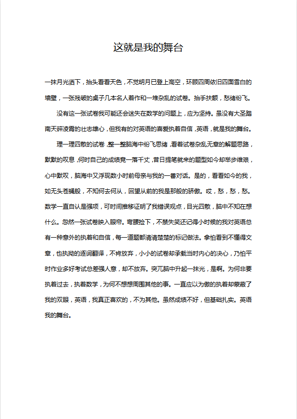 电脑知识网提供个性化初中语文作文:这就是我的舞台下载,模板编号为1916675,大小为12KB,作品在2019-09-19上传到电脑知识网,作品高清大图模板,格式为doc,属于作文模板高清模板,作品模板源文件下载后可用编辑替换,模板中如有人物画像仅供参考禁止商用。