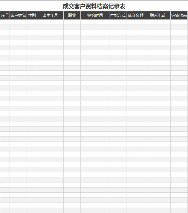 电脑知识网提供个性化成交客户资料档案记录表excel模板下载,模板编号为2079300,大小为14.61KB,作品在2020-04-09上传到电脑知识网,作品高清大图模板,格式为xlsx,属于市场营销高清模板,作品模板源文件下载后可用编辑替换,模板中如有人物画像仅供参考禁止商用。