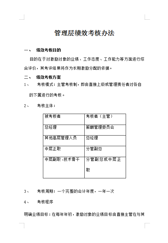 管理层绩效考核Word模板