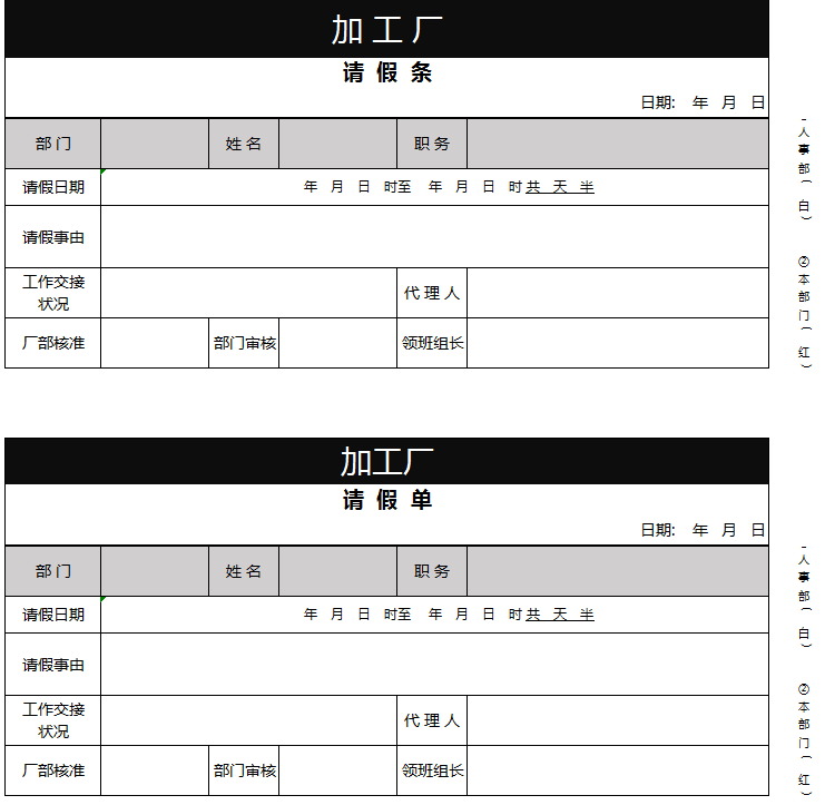 请假条excel模板