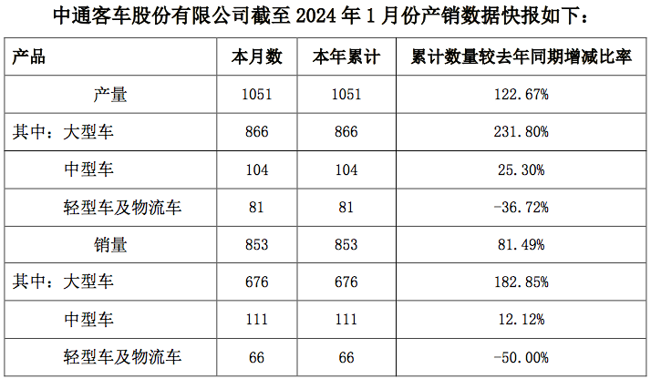 「图片来源:中通客车产销公告」
