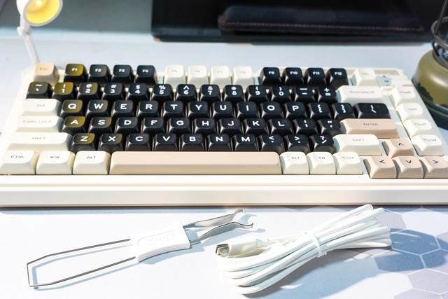 因为珂芝K75 Lite是一款三模连接的机械键盘,所以包装内除了键盘外,还有一条A to C的连接线、拔轴器和说明书等。