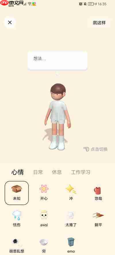 1、首先,点击自己头像上的想法图标,进入到想法状态界面;
