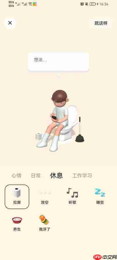 2、然后,选择你想要的状态,并点击右上角的【就这样】按钮,即可完成状态的设定;