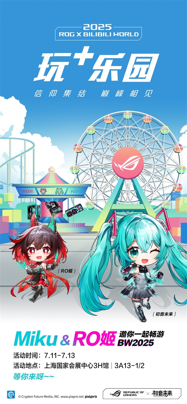 7月11日至13日,上海国家会展中心,华硕主板带你玩转BW2025!锁定3H馆 | 3A13-1/2,ROG玩+乐园,信仰集结,巅峰对决,多重惊喜等你来探索!据说这次还有全新的ROGx初音未来主板呢!