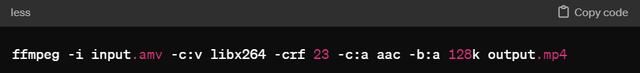 第三步:执行转换命令。 使用以下命令将AMV文件转换为MP4格式: